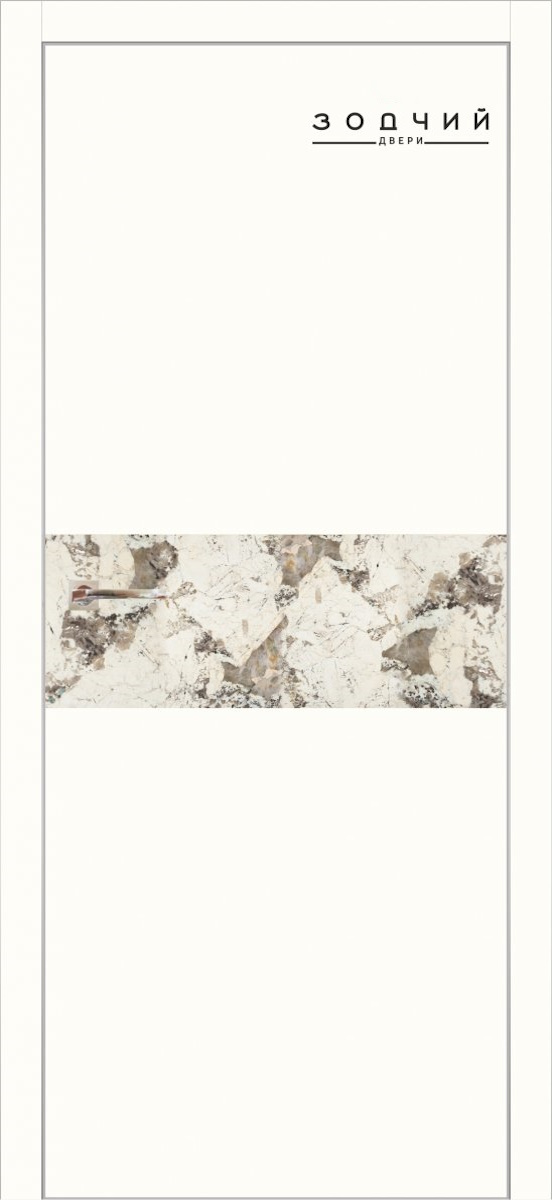 Дверь межкомнатная ЗОДЧИЙ МЕГАПОЛИС Г1 ПГ Шагрень молочная вставка мрамор