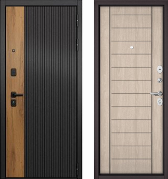 —Входная дверь МАСТИНО CITY PRIME 401 Черный матовый + Дуб галифакс медовый / 137 Ясень Ривьера