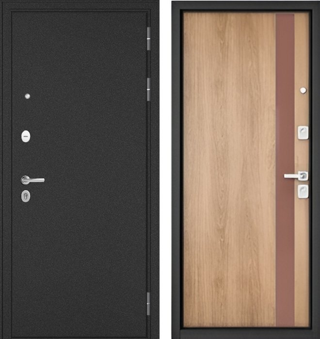 —Входная дверь МАСТИНО TRUST MASS Металл Букле графит / Si-3 Дуб шале натуральный + Matelac Silver Bronze